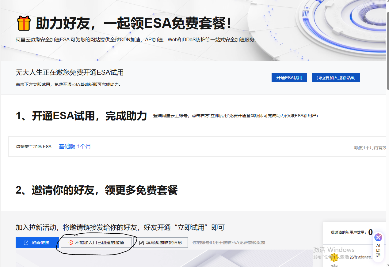 1.这个免费套餐一个账号只能购买一个。
